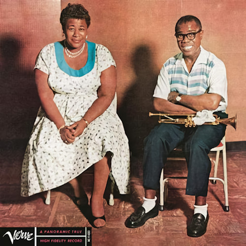 Fu dopo una serata. Dopo un concerto, con tante stelle sul palco. Era linizio di quello che passerà alla storia come uno degli album più noti (e quindi venduti) della storia del jazz, e non solo del jazz. Perché il giorno dopo quella fatidica serata correva lanno 1956 Ella Fitzgerald e Louis Armstrong varcavano la soglia di uno studio di registrazione a Los Angeles per incidere un disco semplicemente intitolato Ella and Louis. Anzi, a dire il vero, in copertina il titolo nemmeno figurava: cerano solo loro, seduti disinvoltamente su due seggioline pieghevoli, durante una pausa delle registrazioni, e nientaltro. A supportare la magnifica coppia, poi, cera nientemeno che il quartetto capeggiato dal mostro sacro del pianoforte Oscar Peterson, con Herb Ellis alla chitarra, il grande (e grande amico) Ray Brown al contrabbasso e il gigante della batteria Buddy Rich. Poco da stupirsi che la scintilla scoccasse, che la voce della grande lady del jazz si fondesse, si intrecciasse, duettasse e duellasse non solo con la tromba di Satchmo (già tanto umana nel suono), ma anche con il vivo e inimitabile canto del grande padre del jazz: forse, in apparenza, quanto di più lontano dallo stile di Ella, ma in realtà capace di raggiungere una sintonia perfetta nel nome dello swing. Un album magico.